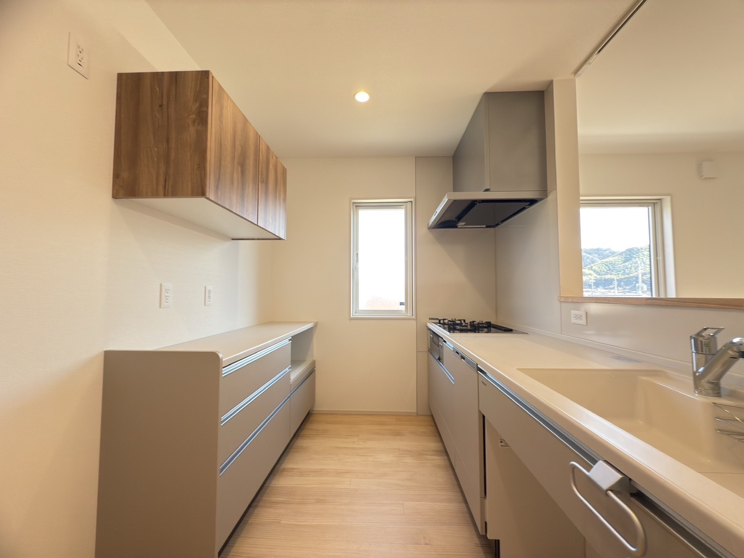 シンク・調理スペースとコンロを分けてレイアウトしたキッチン。