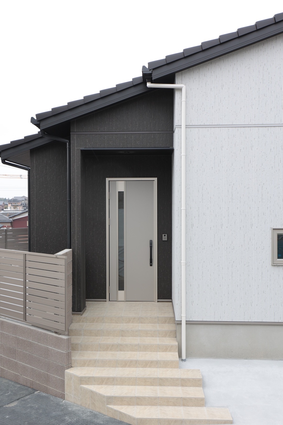 もしひと目が気になるのなら、玄関前に格子やルーバーを設置したり、
