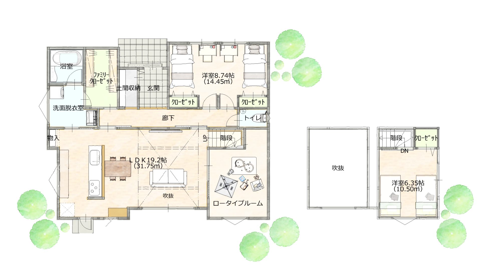 TOP > 間取りプラン集 > 吹き抜けがある平屋✨