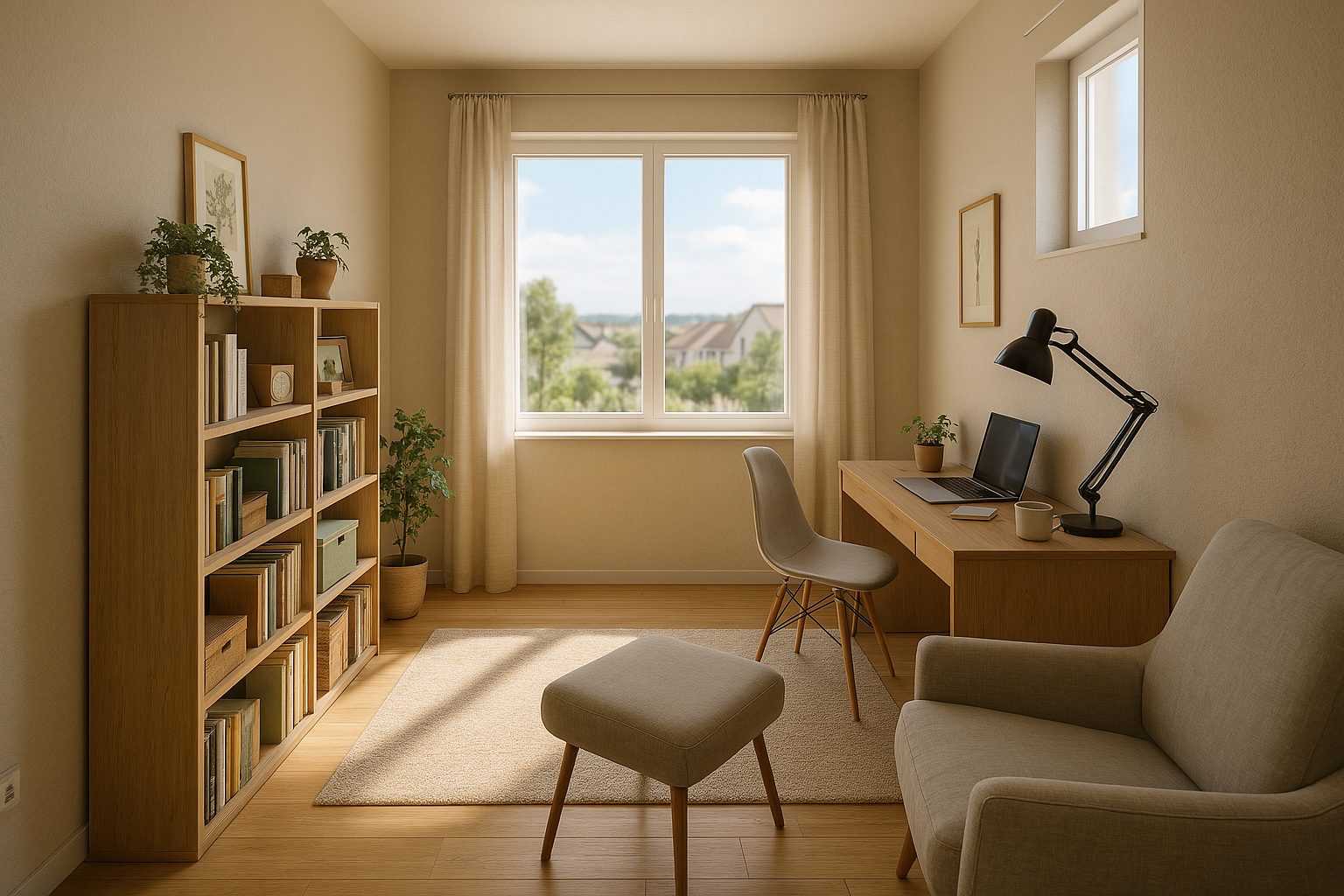 おすすめは、寝室横や廊下の一角など、生活音から少し距離を取れる場所。