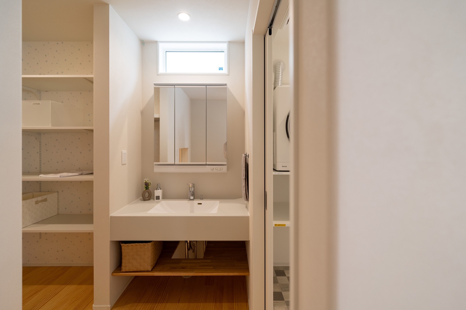 水まわりやリビング、収納の間取りを回遊動線にするのも、空間を広く見せる工夫のひとつです。
